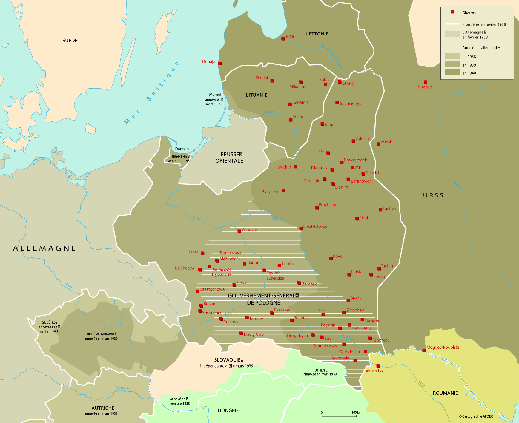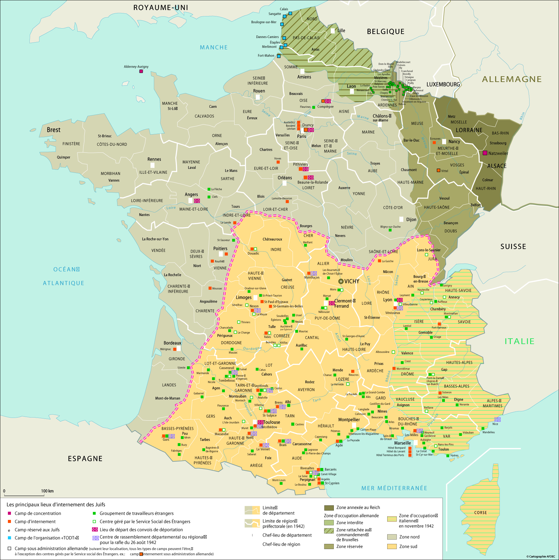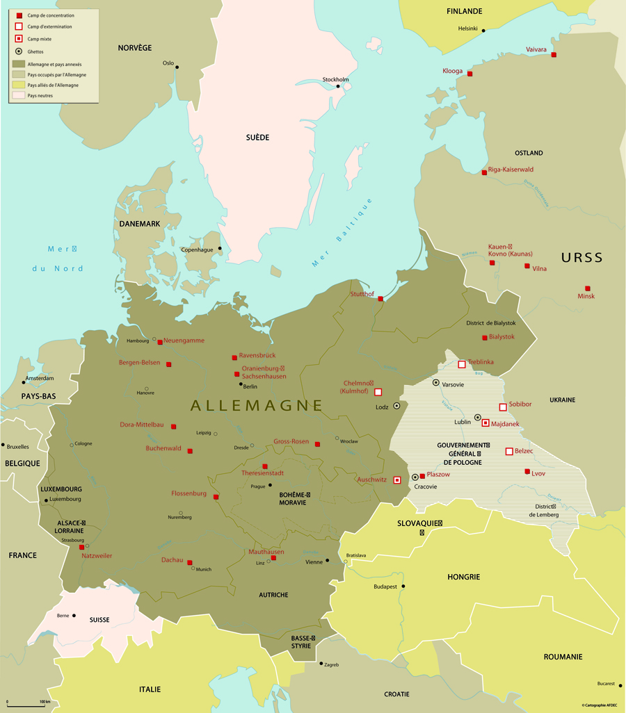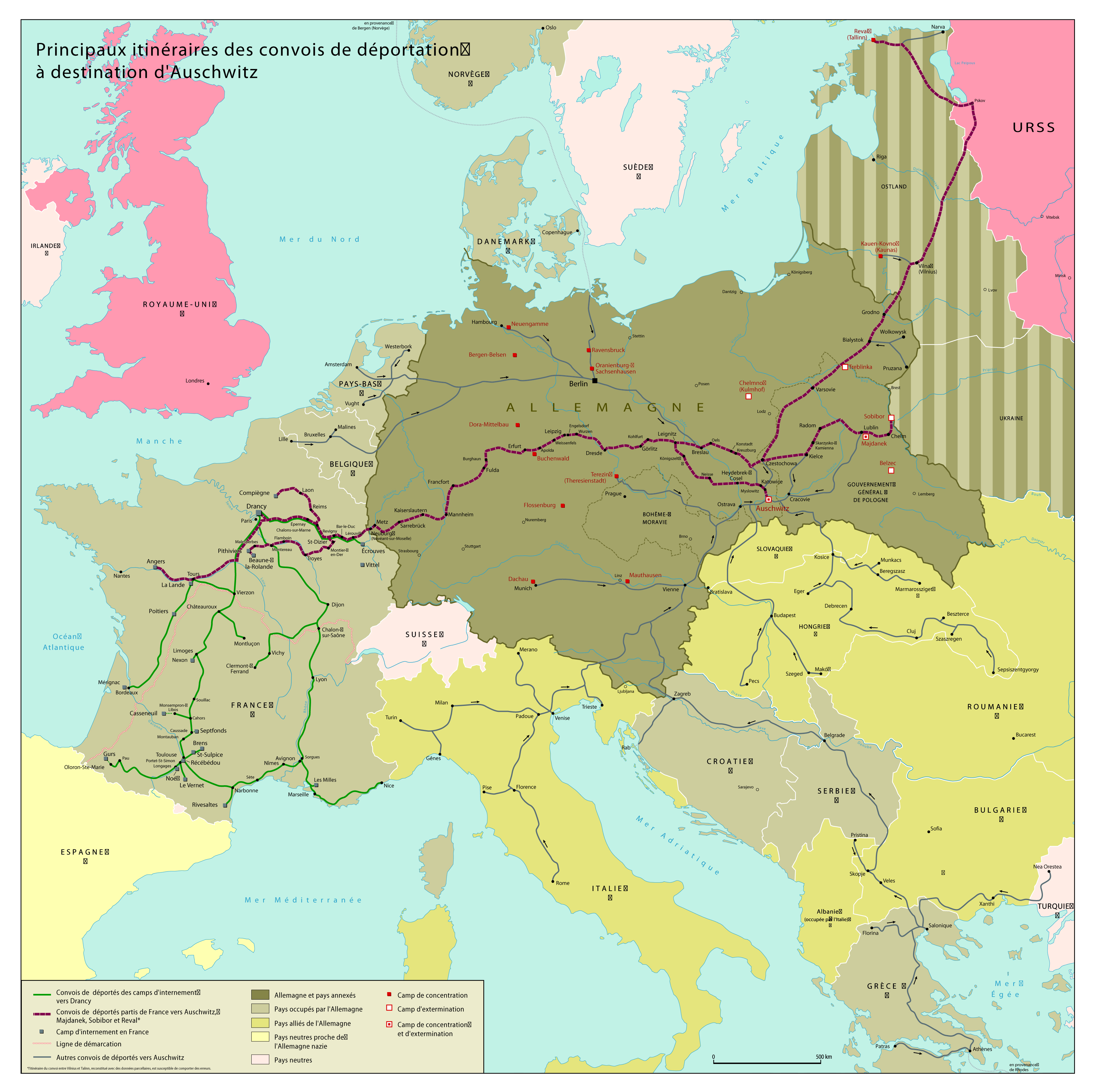 Les cartes téléchargeables illustrent différentes thématiques : les camps d’internement en France, les ghettos de Pologne, l’itinéraire des principaux convois à destination d’Auschwitz…