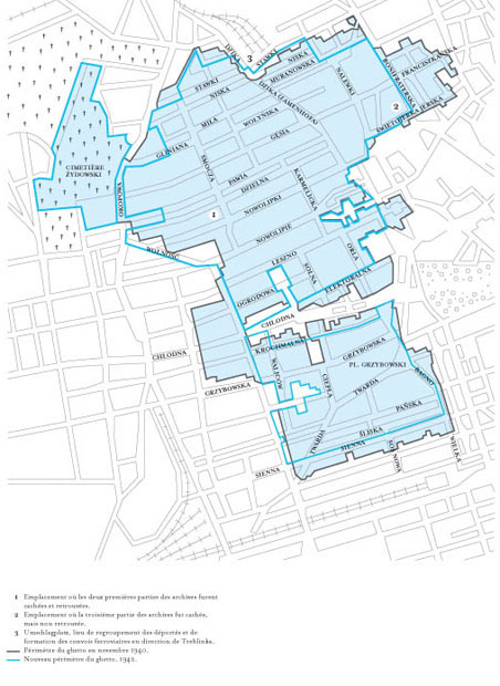 Erigé au centre de Varsovie, le ghetto concentrait dans 73 des 1800 rues de la ville les quelques 370 000 Juifs résidant dans la capitale polonaise en 1939, soit 30 % de la population, auxquels se sont progressivement ajoutés les Juifs des villes et villages alentour. Entouré d’un mur haut de 3 mètres et long de 18 km, ce quartier fermé sera réduit en 1941, atteignant une densité de 146 000 habitants au km².