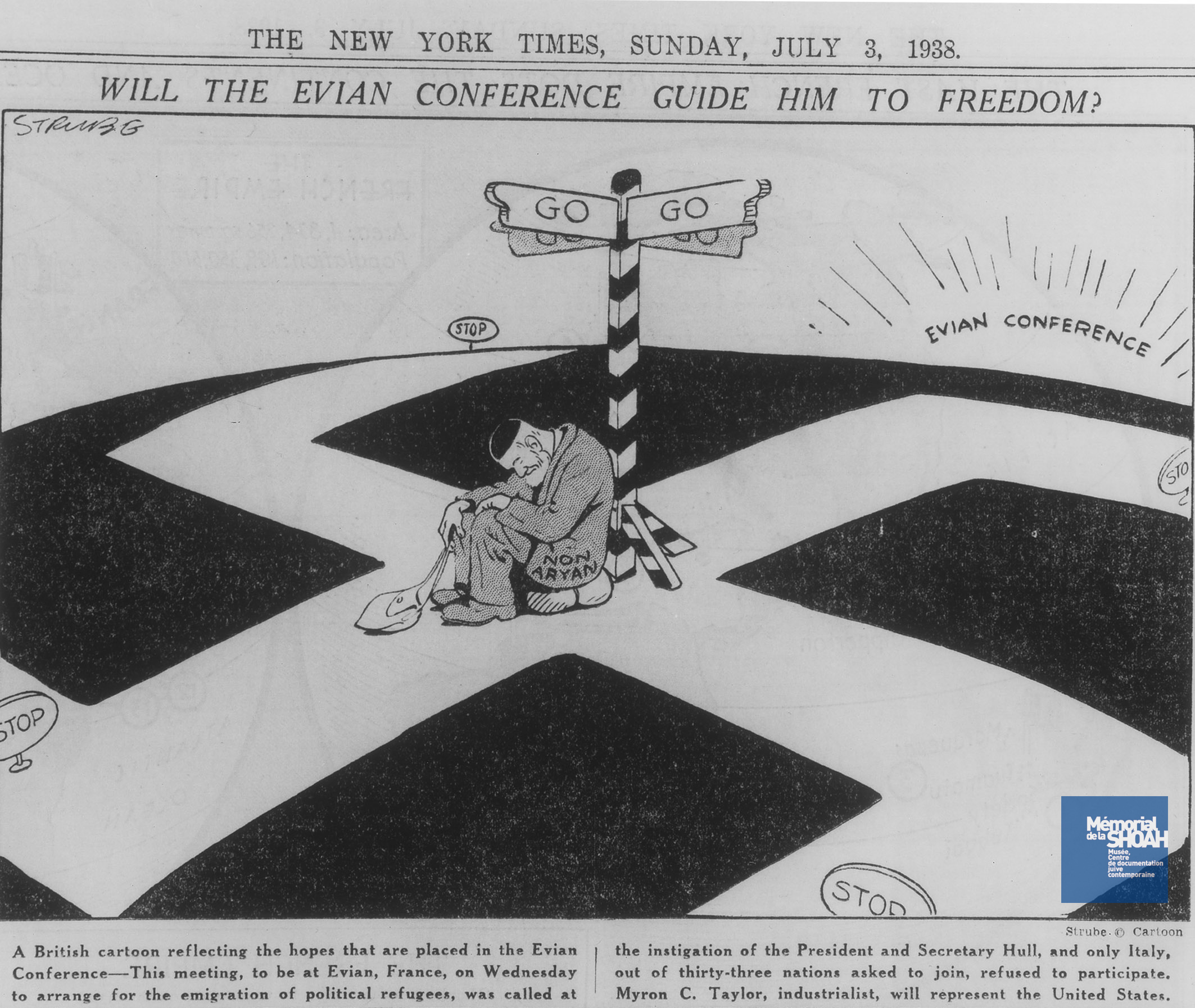 Le refus des pays d’accueil potentiels à ouvrir grandes leurs frontières, et l’échec de la conférence d’Évian à trouver une solution globale à la question des réfugiés, signeront l’abandon des Juifs par la communauté internationale à la veille de la guerre.